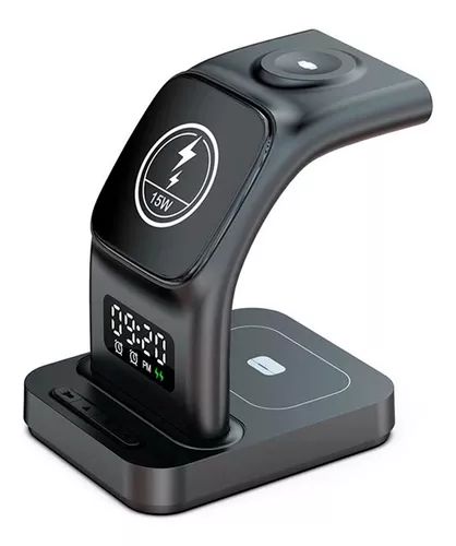 CARREGADOR 5 EM 1 PARA IPHONE APPLE WATCH E AIRPODS + RELÓGIO + LUMINÁRIA